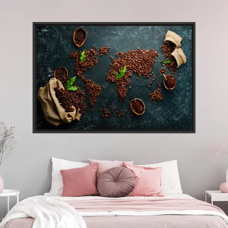Artistic World Map Canvas: Elegant Coffee Lover Gift