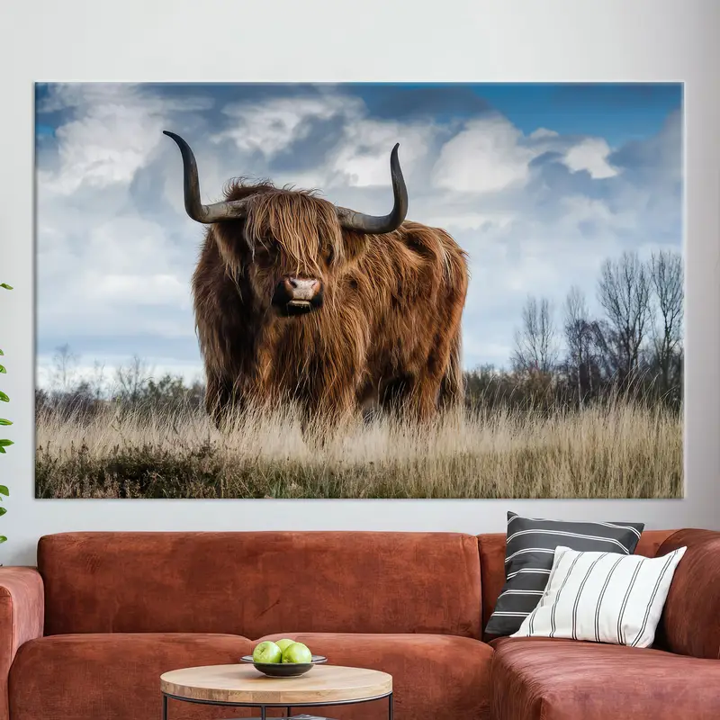 Elegant Highland Cow Village Canvas: Artistic Scottish Decor