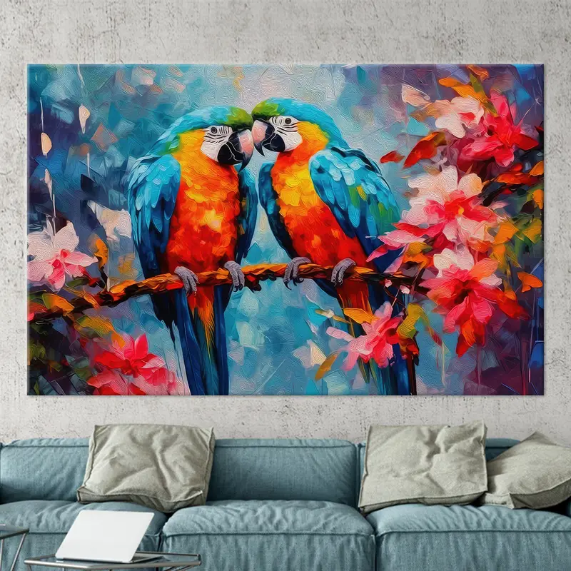 Elegant Parrot Couple Canvas: Vibrant Printed Wall Art