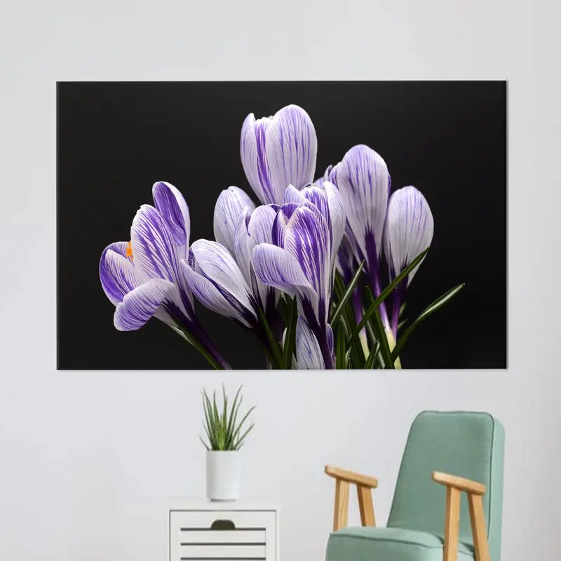 Modern Luxury Purple Crocus Flower Canvas Print, Elegant Decor