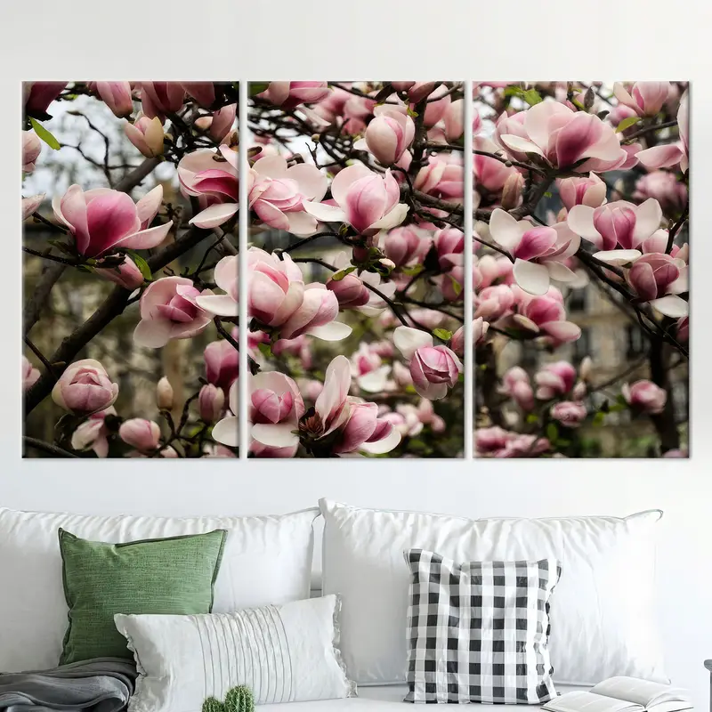 Modern Spring Landscape Canvas: Pink Magnolia & Trendy Pink Flowers