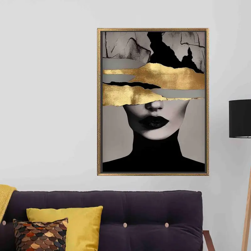 Golden Woman Abstract Canvas Print: Elegant Wall Art Decor