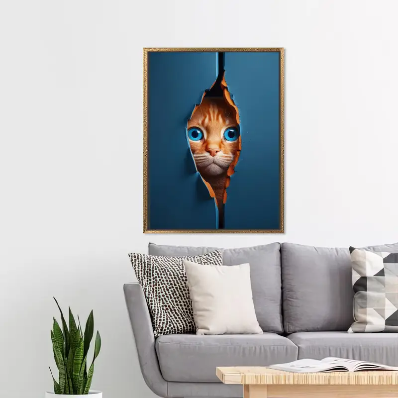Modern Blue Eyed Cat Canvas for Elegant Kids Room Decor