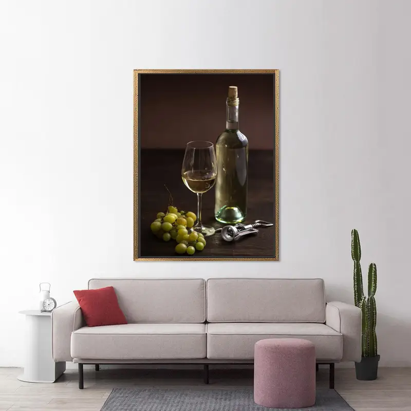 Elegant Vineyard Canvas: Wine, Grapes, and Rustic Charm