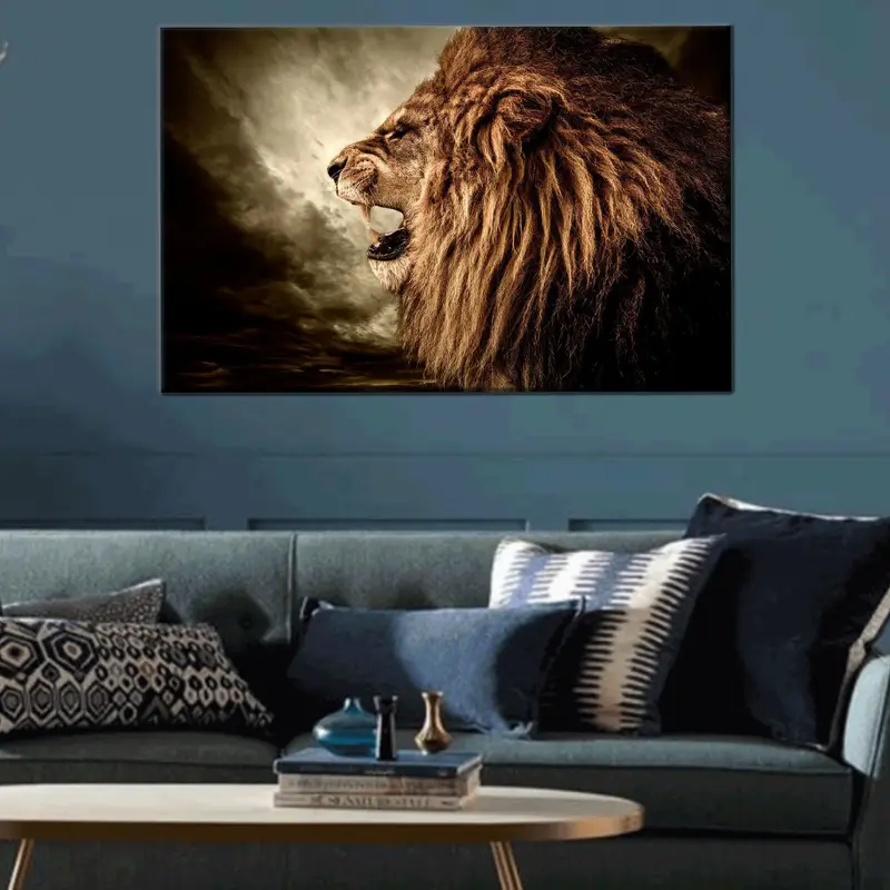 Modern Lion Canvas: Elegant Man Cave Decor for Lion Lovers