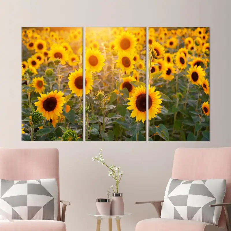 Sunflower Field Canvas: Yellow Farmhouse Kitchen Art Print