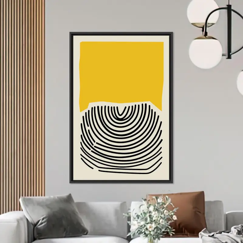 Minimal Boho Abstract Canvas: Elegant Yellow Printed Artwork
