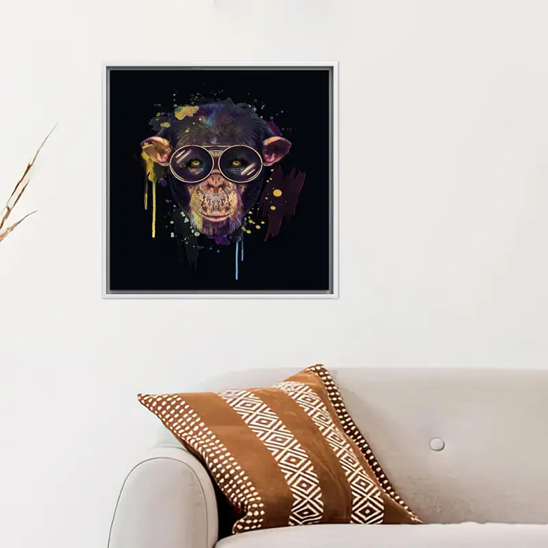 Modern Monkey Abstract Black Printed Canvas - Artistic Elegance