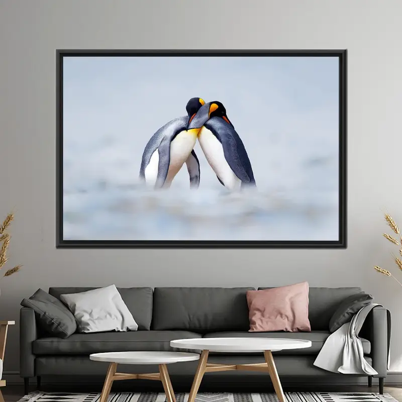 Elegant Penguin Snow Canvas: Winter Love Art Print