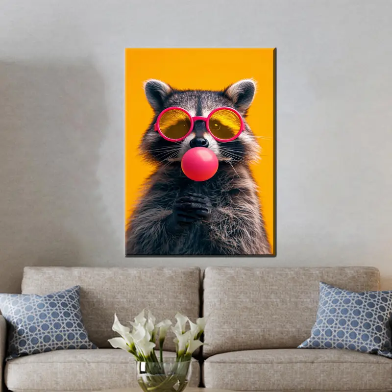 Modern Abstract Raccoon with Bubble Gum Canvas Print for Kids Room