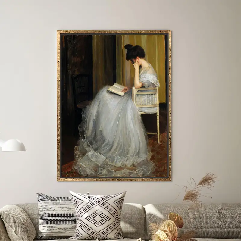 Vintage Woman Reading Book: Elegant Canvas Print for Home Decor