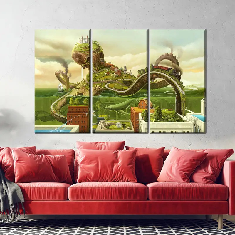 Enchanting Green Octopus Surreal Canvas Print - Abstract Underwater Art
