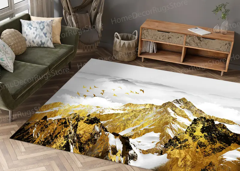 Modern Scandinavian Printed Rug: Abstract Mountain Design, Elegant Fabric