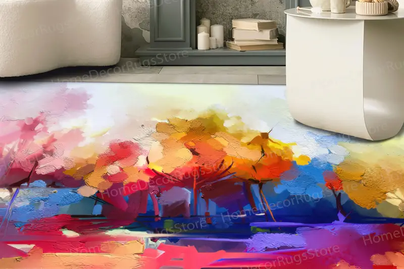 Modern Abstract Forest Printed Rug: Autumn, Colorful Nature Design