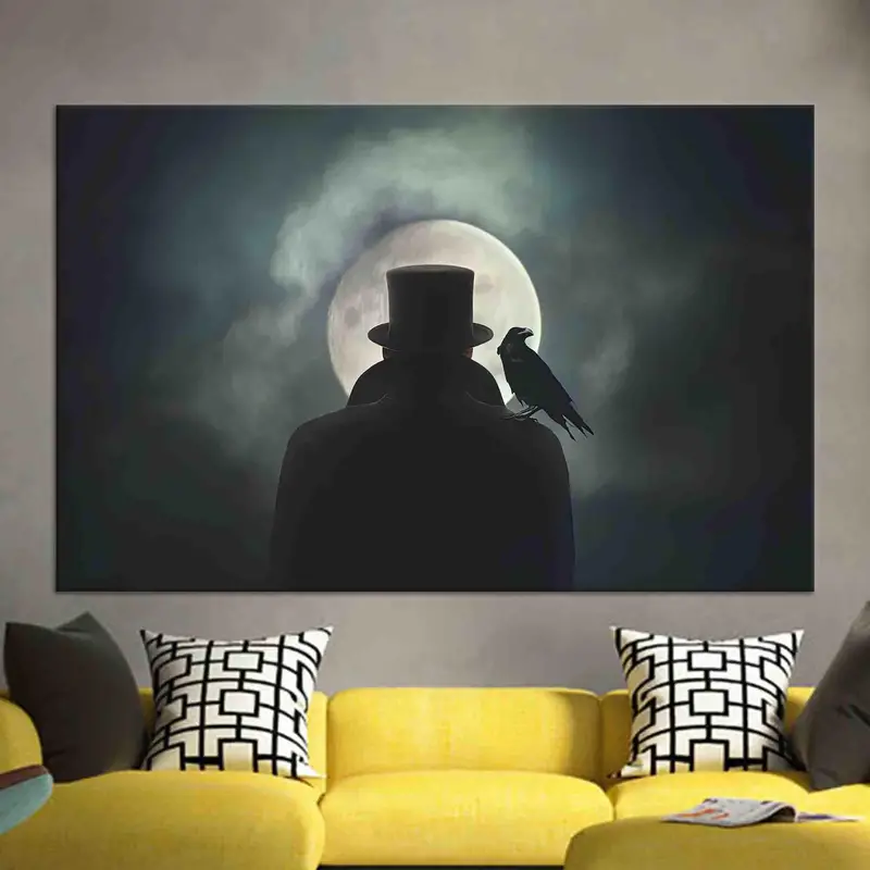 Enchanted Night Canvas: Full Moon & Man with Bird