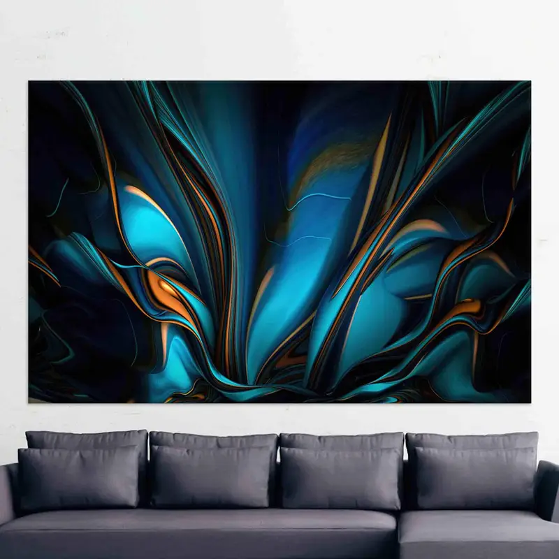 Elegant Blue and Orange Printed Canvas - Artistic Home Decor
