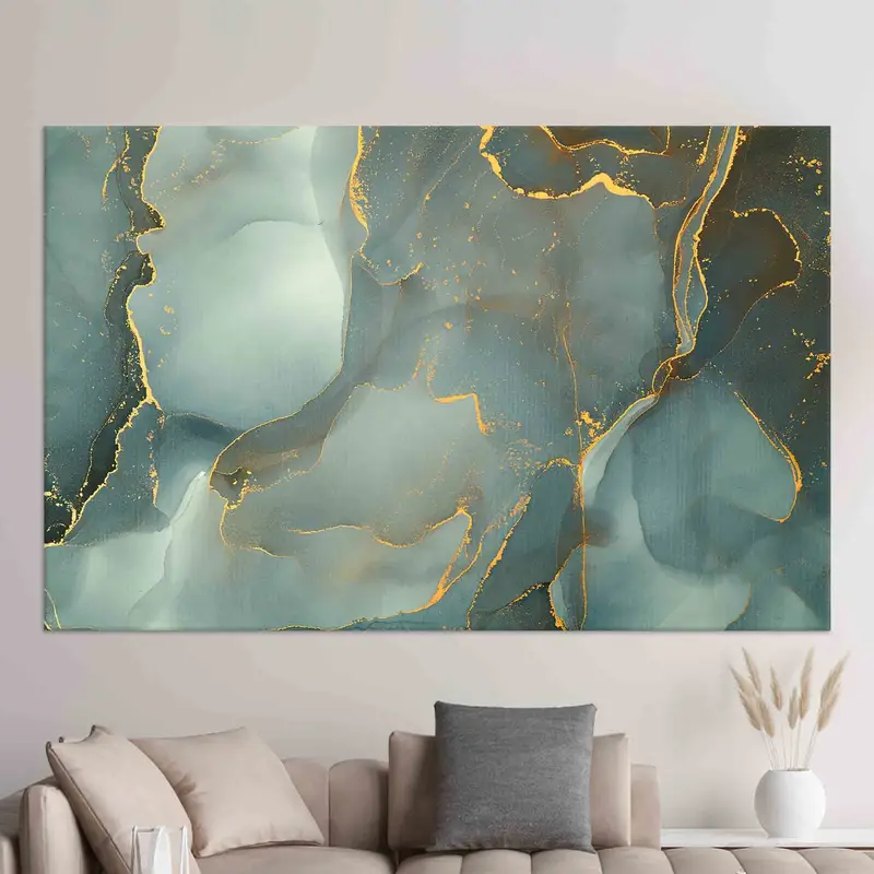 Elegant Green Gold Marble Printed Canvas: Modern Luxury Decor