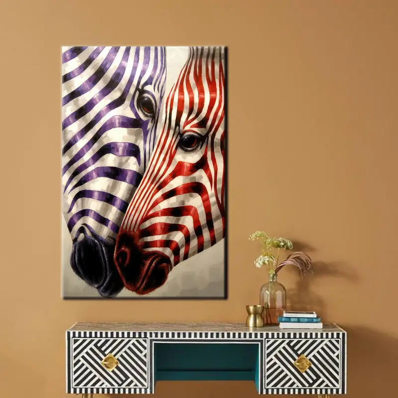 Modern Zebra Purple & Red Printed Canvas: Trendy Wall Art