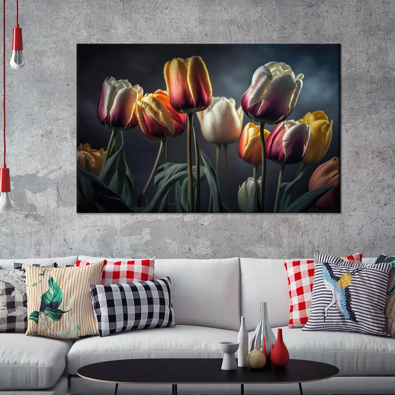 Modern Tulip Canvas: Vibrant Living Room Art Print