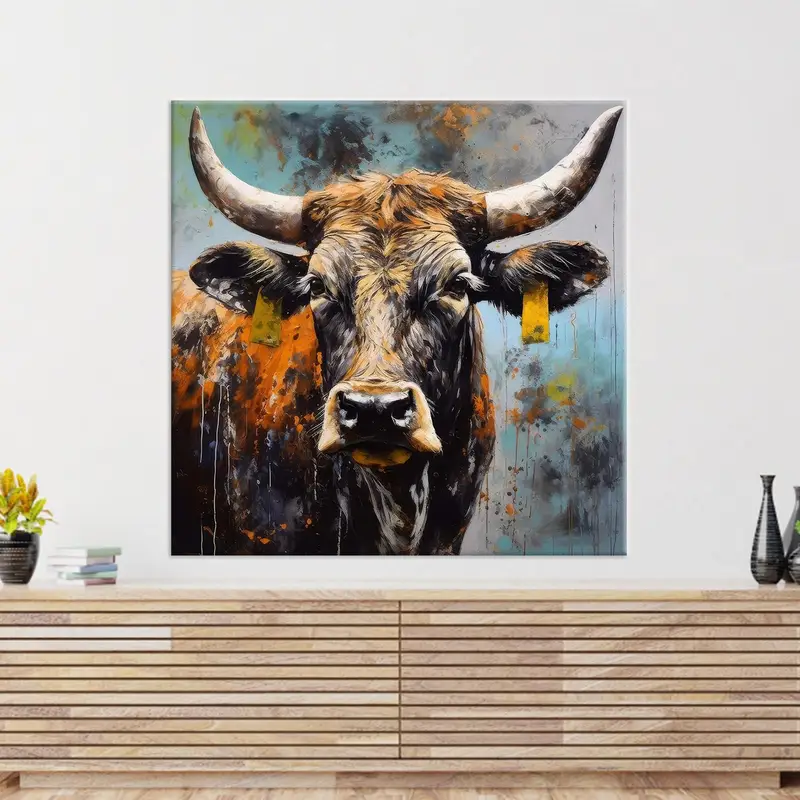 Elegant Abstract Cow Farm Canvas: Coastal Farmhouse Art