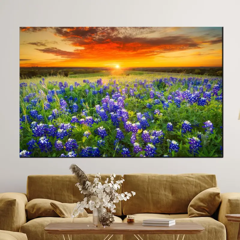 Elegant Sunset Canvas: Vibrant Field Landscape Art Print
