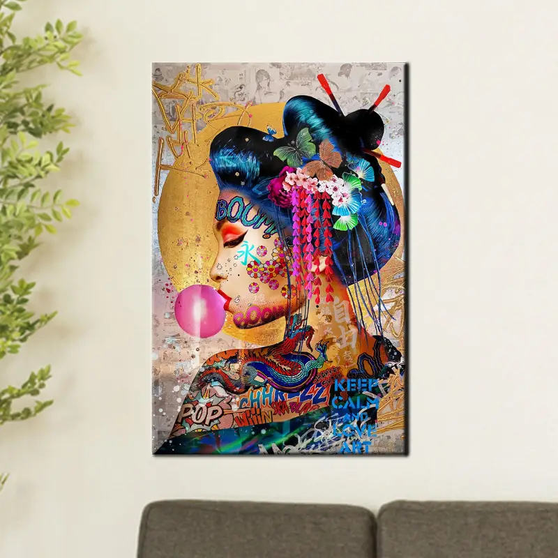 Elegant Geisha Graffiti Canvas: Modern Banksy-Inspired Art Print
