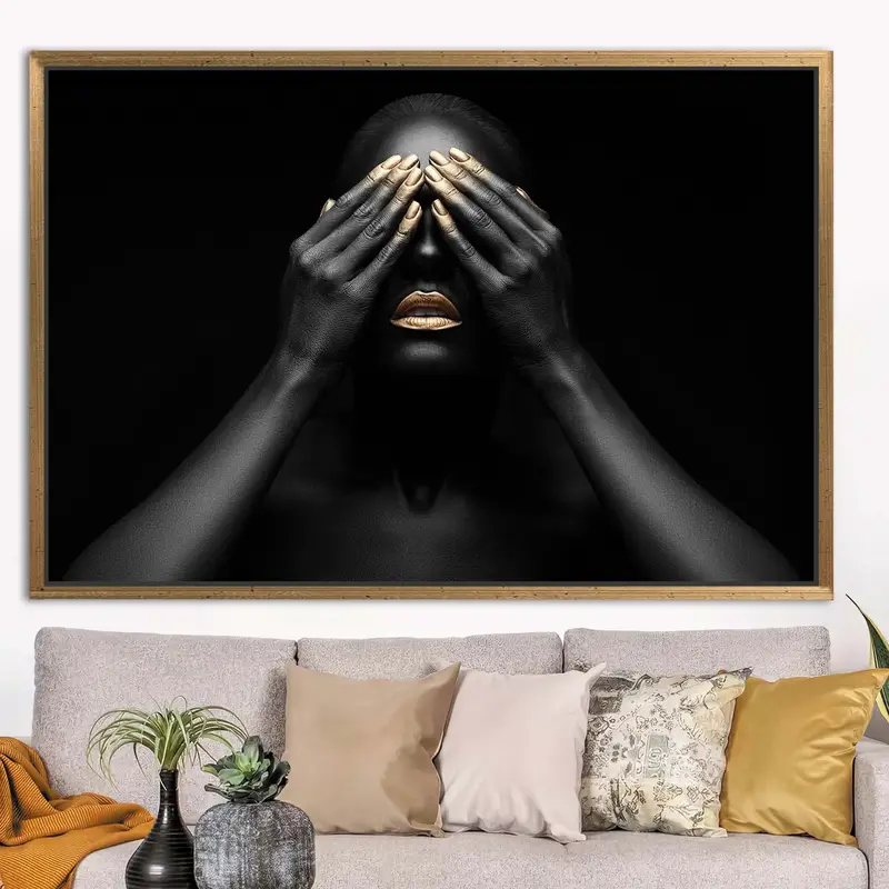 Elegant Black Woman Gold Lip Canvas Print - Luxury Decor