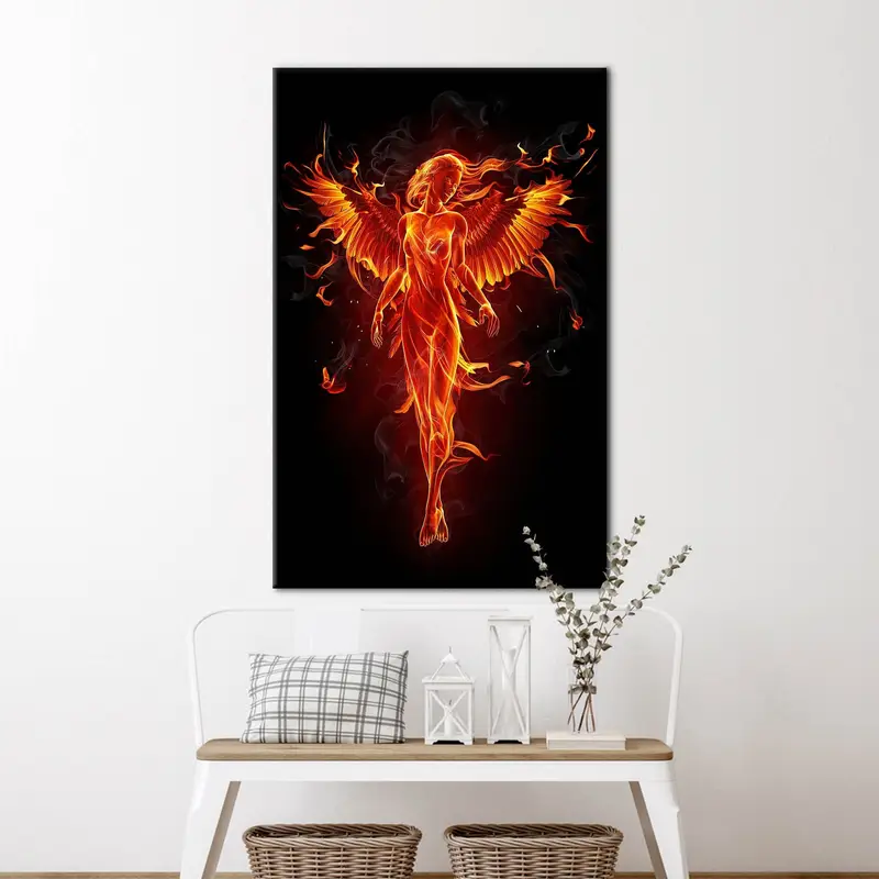 Fiery Woman Canvas: Abstract Fire Elemental Girl Art Print