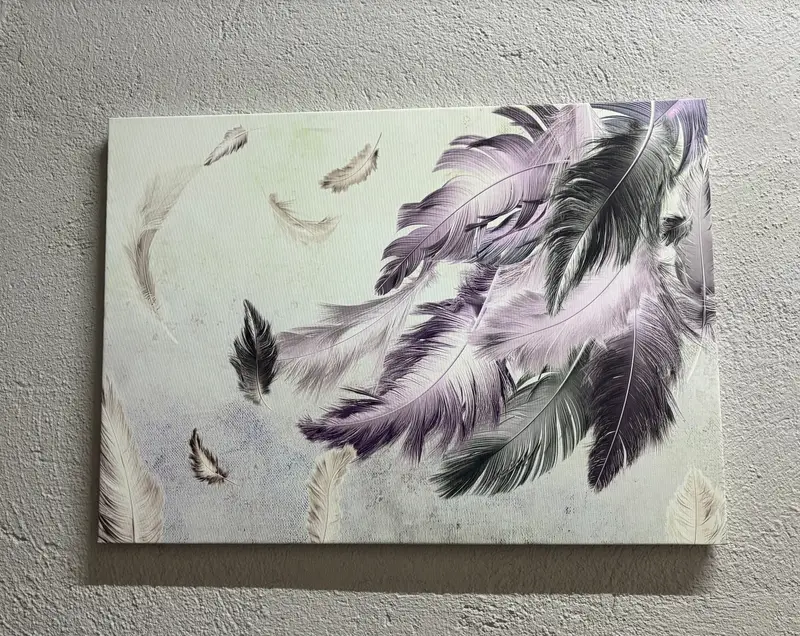 Feather Purple Contemporary Canvas: Soft Tones Printed Art