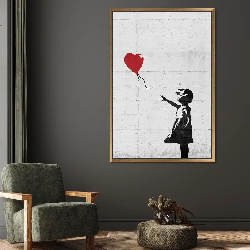 Elegant Banksy Girl Canvas: Contemporary Graffiti Art Print