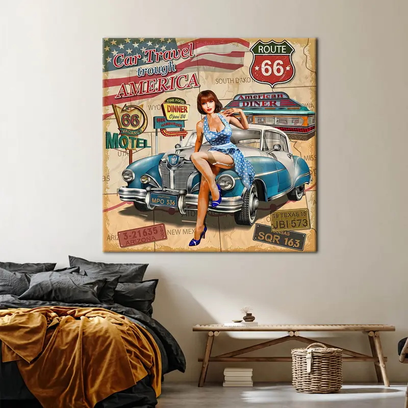 Vintage American Car Canvas: Retro Art Print for Classic Car Lovers