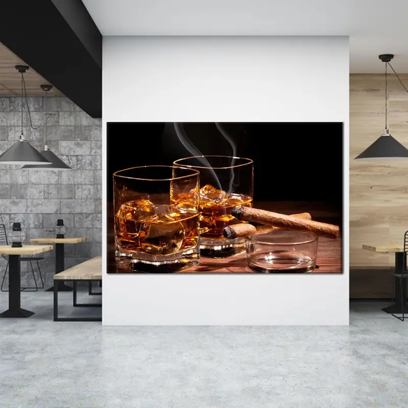 Elegant Cigar Bar Canvas: Man Cave Decor for Loft Atmosphere