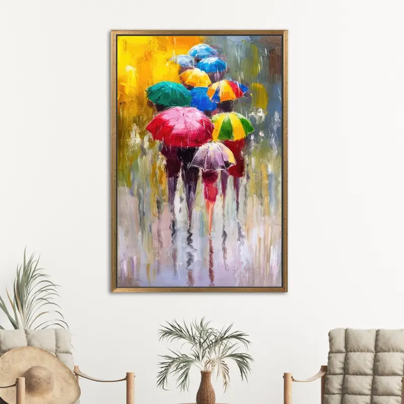 Trendy Colorful Umbrella Canvas: Vibrant Rainy Day Art Print