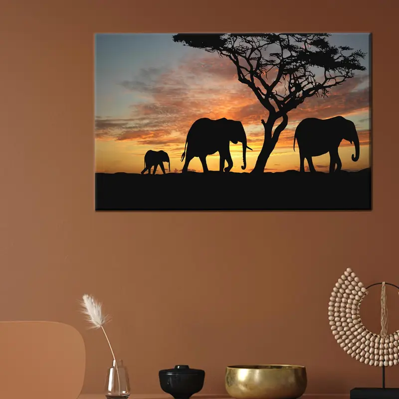 Elegant Elephant Sunset Canvas Print: African Wildlife Art