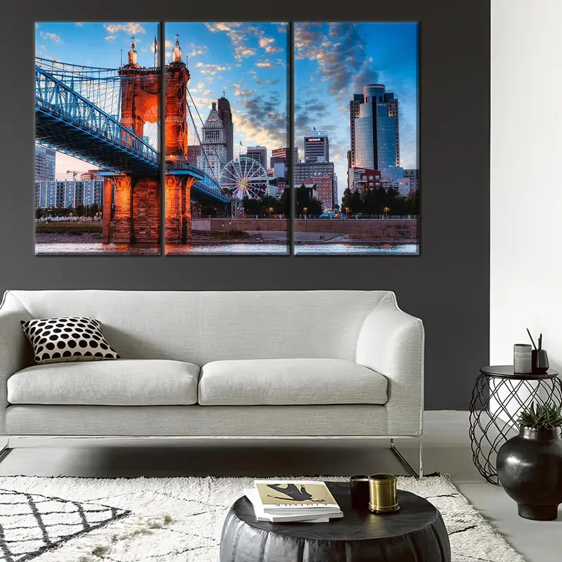 Cincinnati Bridge Cityscape Canvas: Elegant Urban Landscape Art Print