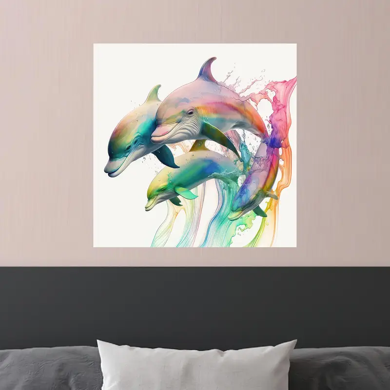 Colorful, Cute Dolphin Modern Canvas Print - Trendy Wall Art