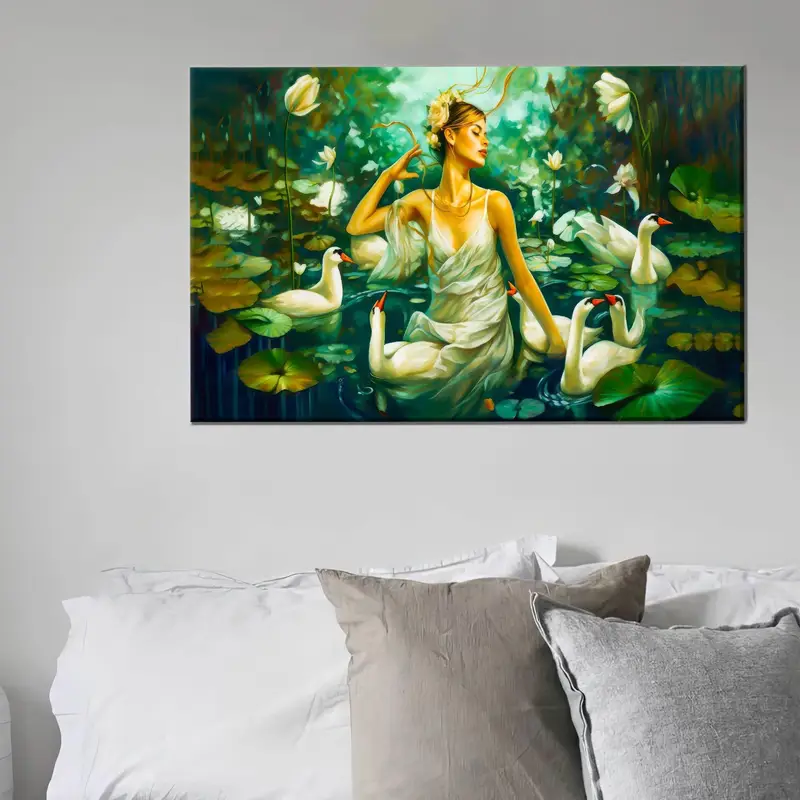 Elegant Swans Abstract Canvas: Woman's Artistic Wall Decor