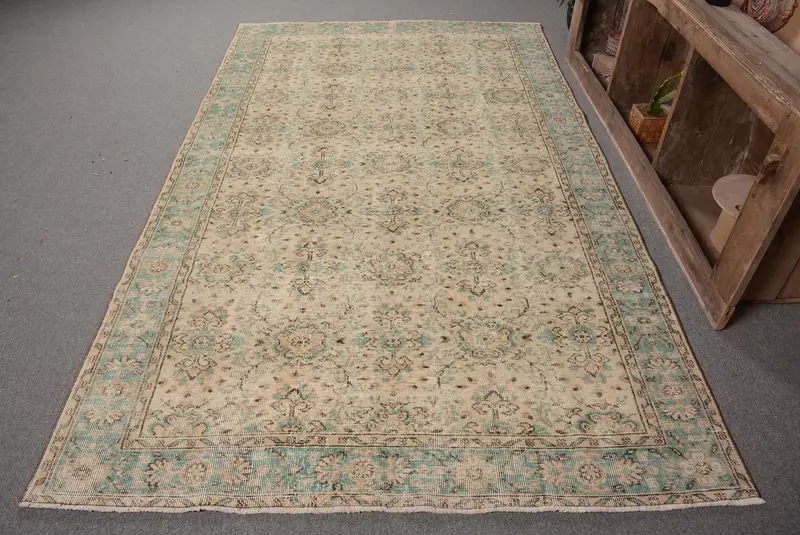 Elegant Beige Rug, 5.4x9 ft with Green Accents