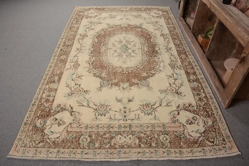 Elegant Beige Floral Rug, 5.5x9 ft Chic Home Decor