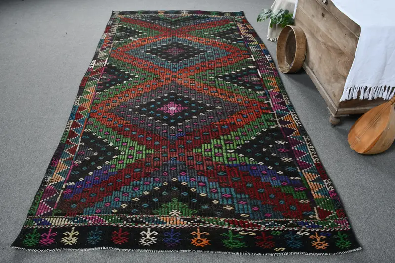5.4x10 ft Rug, Vibrant Orange & Green Striped Rug