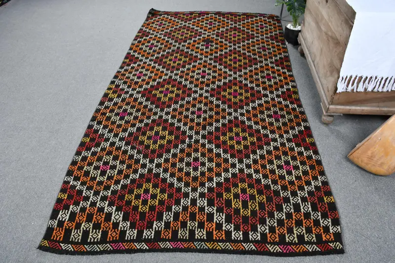 Elegant Black & Orange Rug, 4.7x9 ft Oriental Design