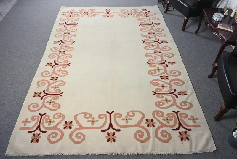 Elegant Beige & Orange Rug, 6.7x10 ft Floral & Paisley