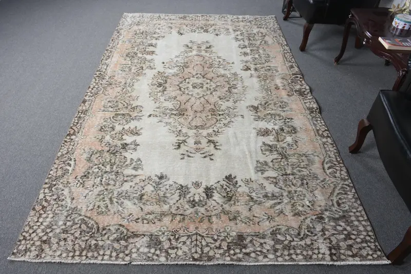 Elegant Beige & Orange Persian Rug, 5.3x9 ft