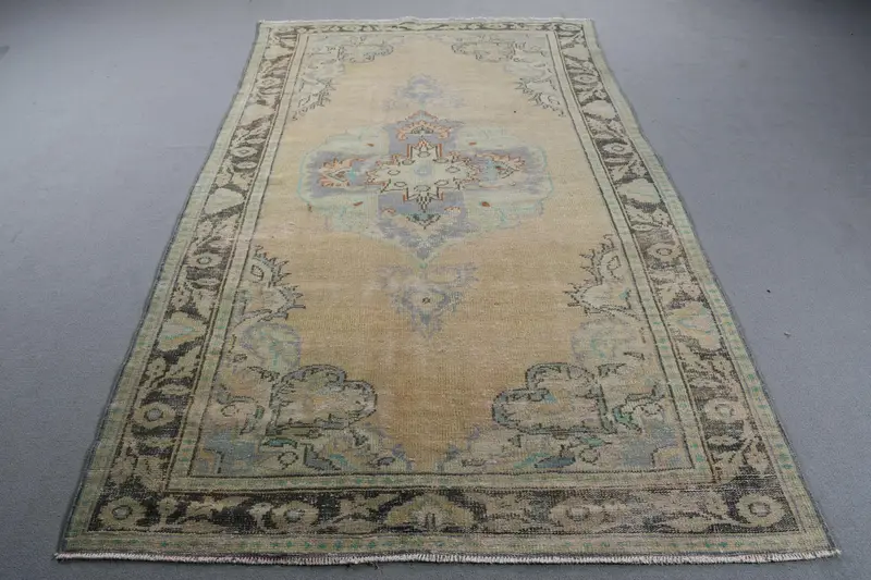 Elegant Green & Purple Rug, 5.3x8.8 ft Bordered Design