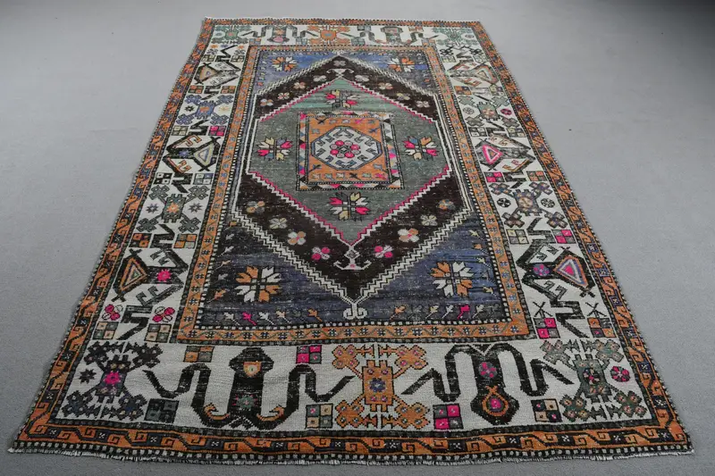 Elegant Green & Beige Floral Rug, 5,3x8,6 ft