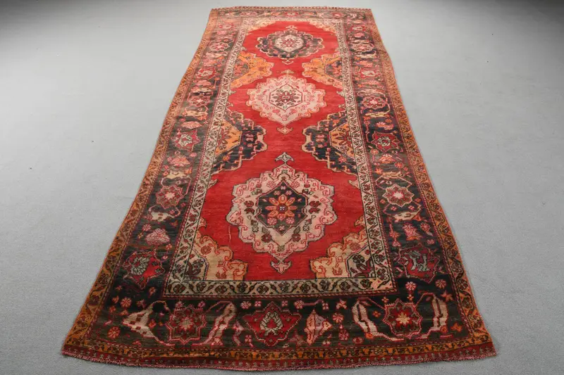 Red & Black Rug, 4,7x11,1 ft Striped Geometric Design