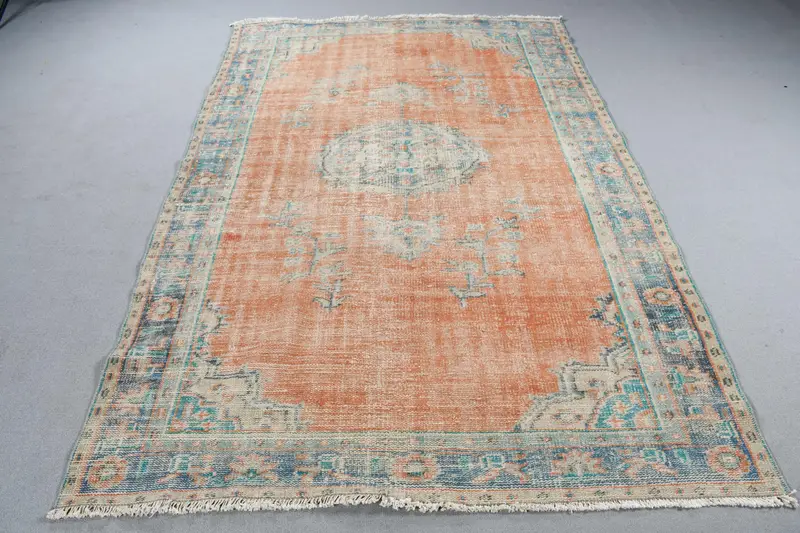 Vibrant Orange & Blue Rug, 5.4x8.5 ft Polka Dot Design