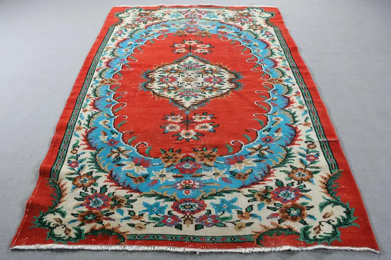 Red & Blue Abstract Rug, 5,4x8 ft Elegant Decor