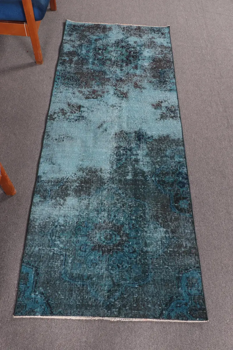 Blue, Brown Bordered Rug, 2.6x6.7 ft Chic Decor