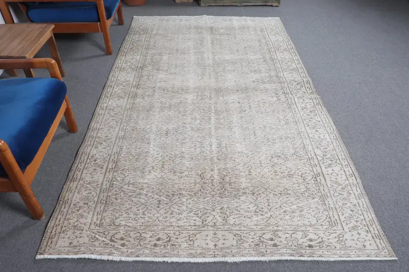 Elegant Beige Oriental Rug, 5x8 ft with Brown Accents